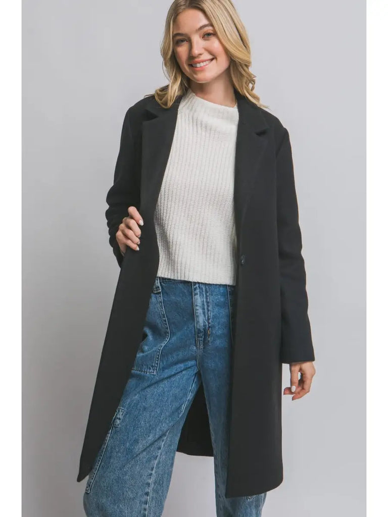 Classic Single Breasted Long Coat || Black