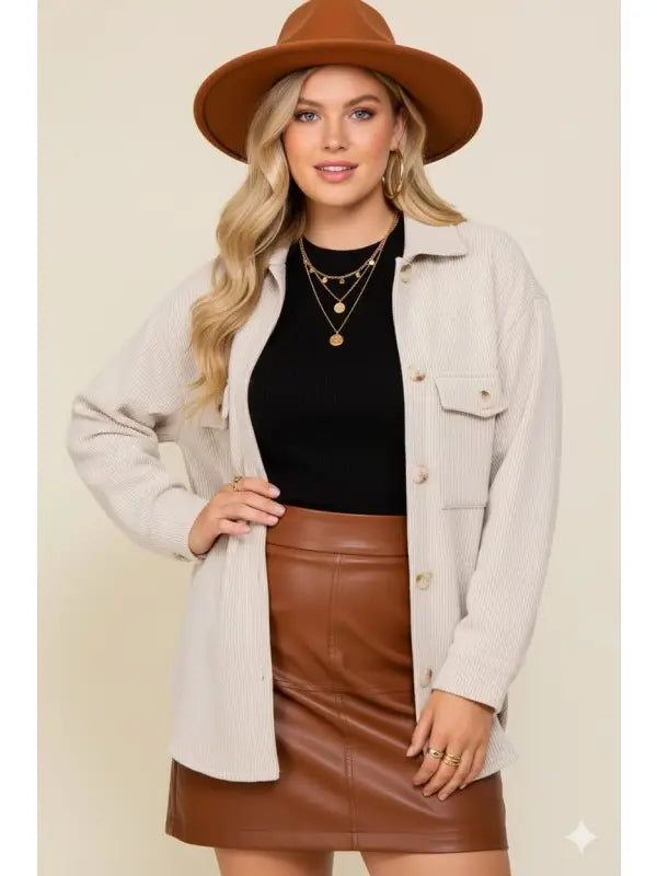 Plus Size Long Sleeve Button Down Brushed Waffle Shacket