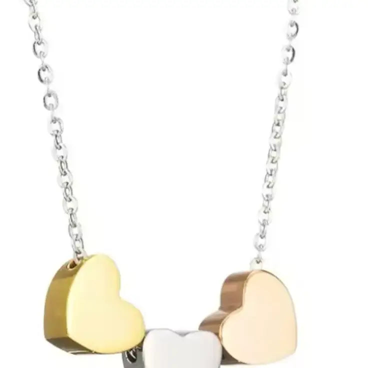 Silver Chain 3 Tri Heart Necklace